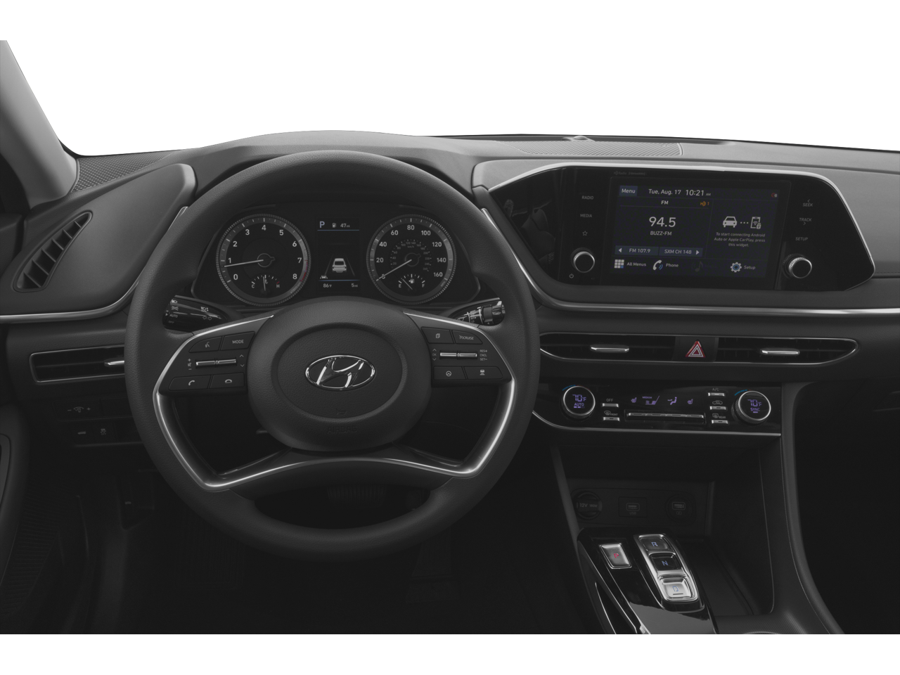 - Radio: AM/FM/MP3/HD/SiriusXM Display Audio -inc: 8" color touchscreen, 6 speakers (2 front door mounted speakers, 2 tweeters and 2 rear speakers), integrated Bluetooth, Blue Link connected car system, Apple CarPlay, Android Auto and USB